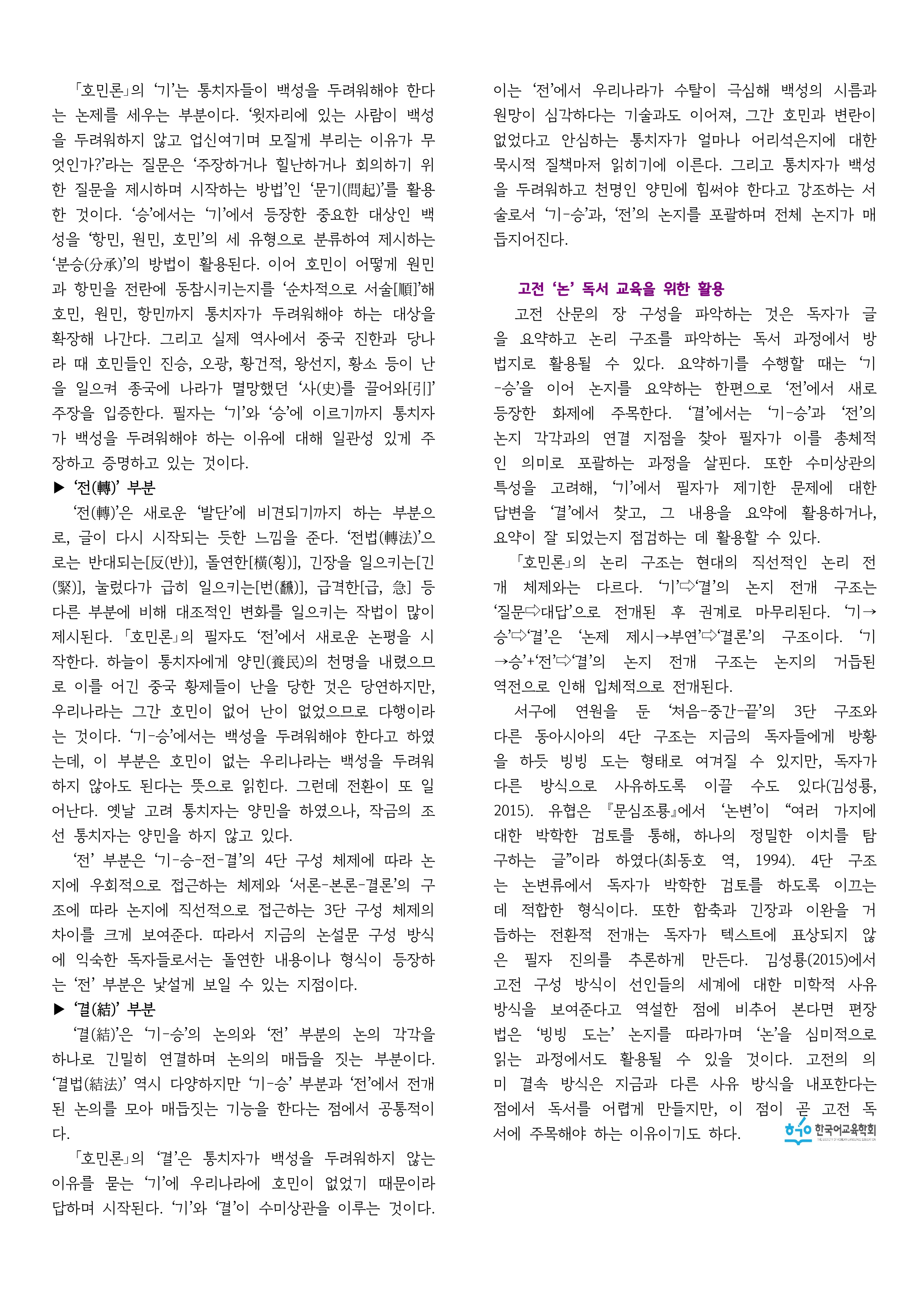 제12호_고전 문장 작법인 편장법(篇章法)을 고전 독서 교육의 방법지로 활용할 수 있을까?