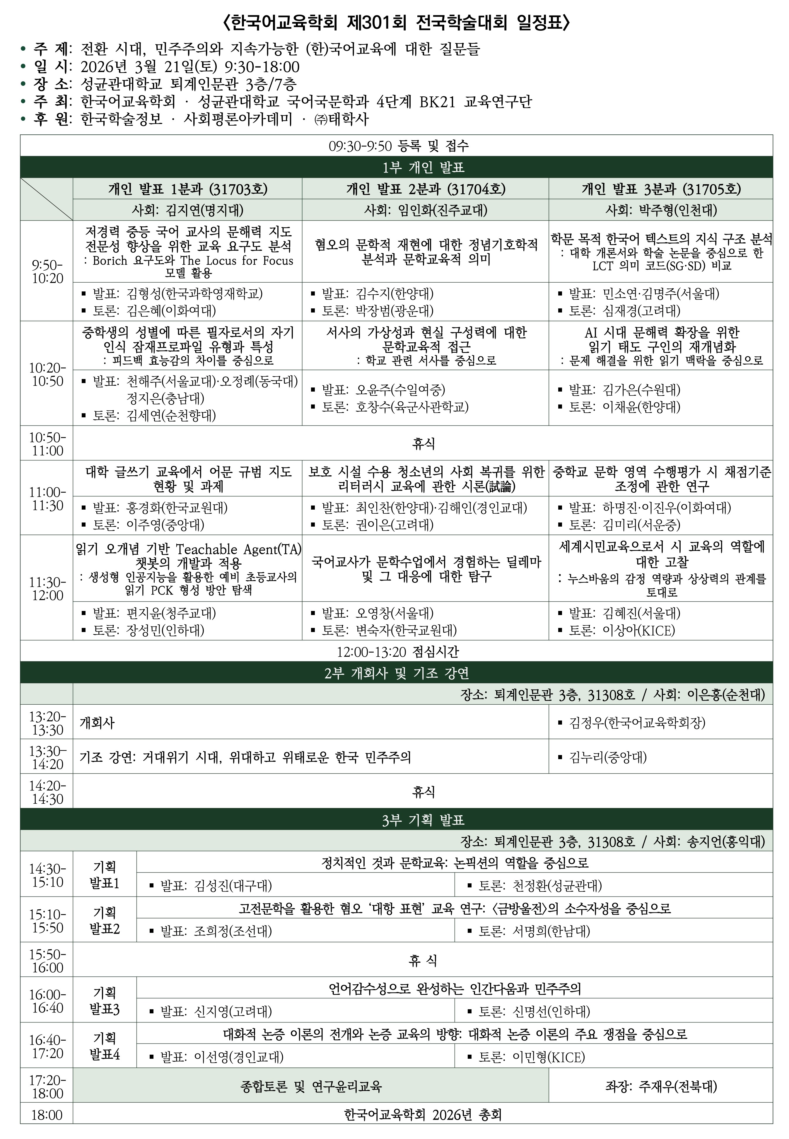 [안내]제301회 전국학술대회 안내(3/21 토, 성균관대)