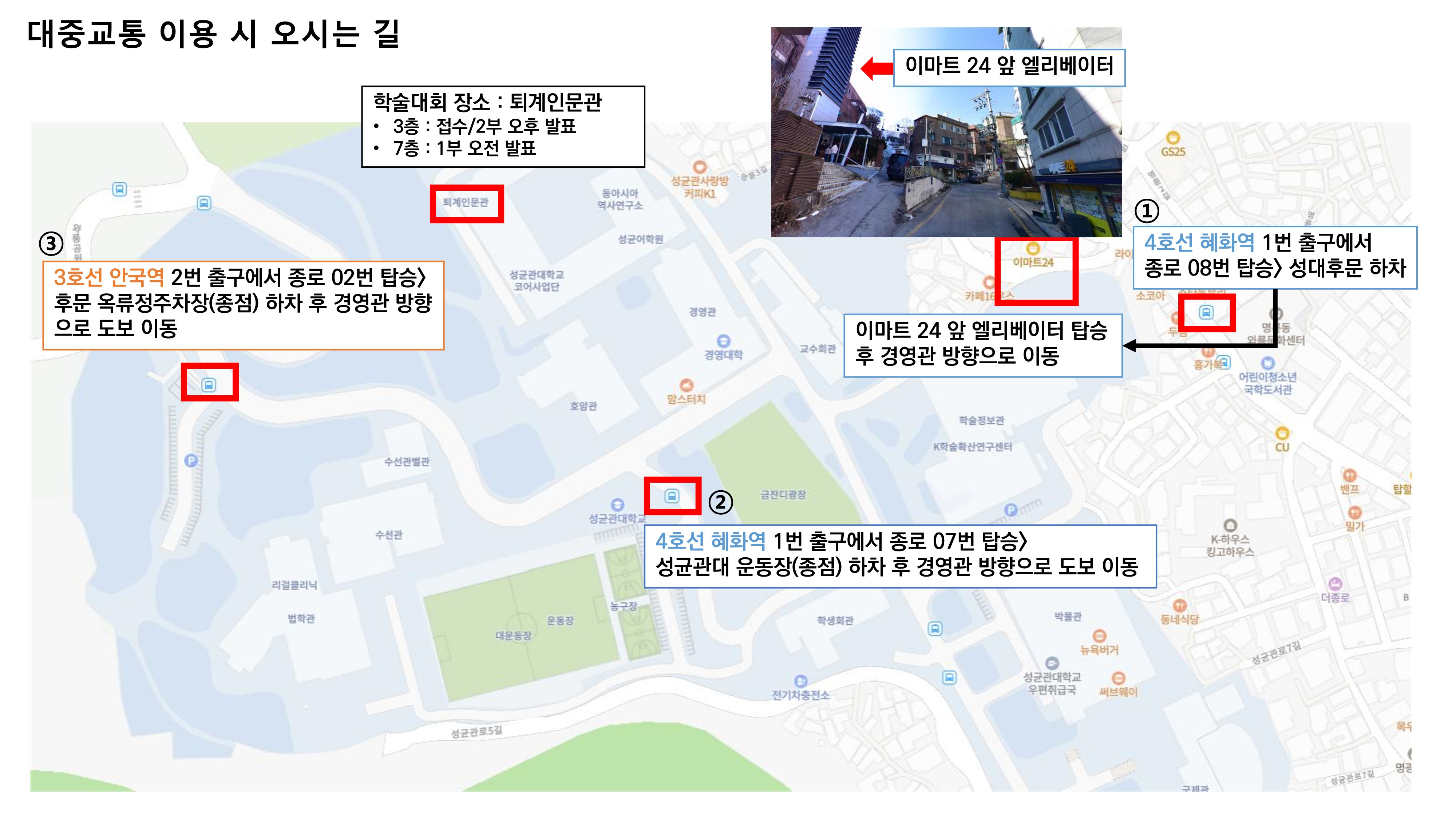 - 학술대회장 오시는 방법(첨부 2.) ※ 아래 종로 08번, 종로 07번, 종로 02번은 정상 운행함을 확인하였습니다.
