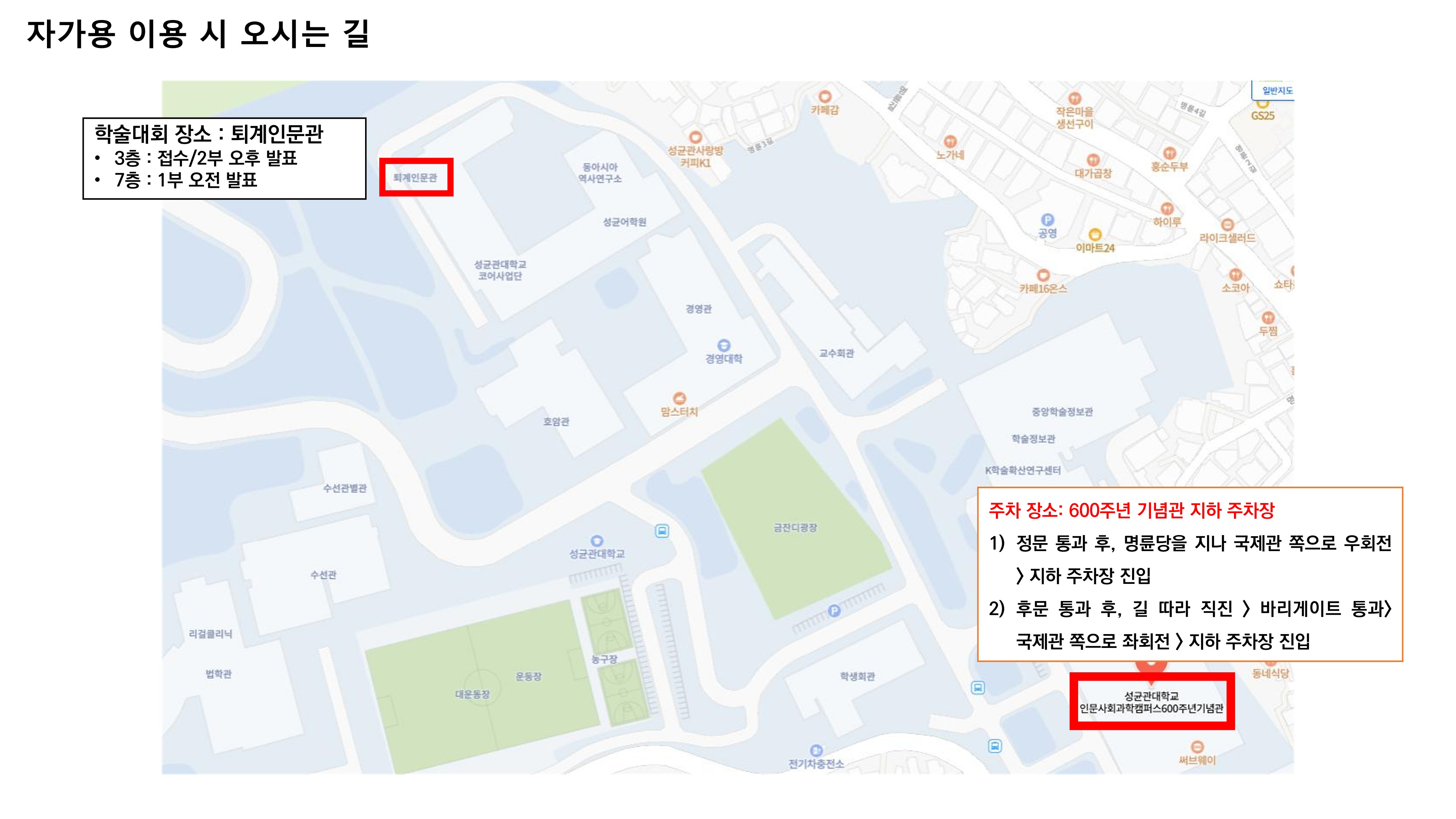 - 학술대회는 성균관대 퇴계인문관(캠퍼스 맵 건물번호 31)에서 진행됩니다. (캠퍼스맵 :https://www.skku.edu/skku/about/campusInfo/campusMap.do#)